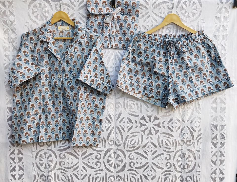 Product Name:Beautiful Hand Block Printed Cotton Women Short Pajama Set