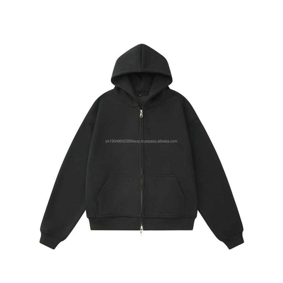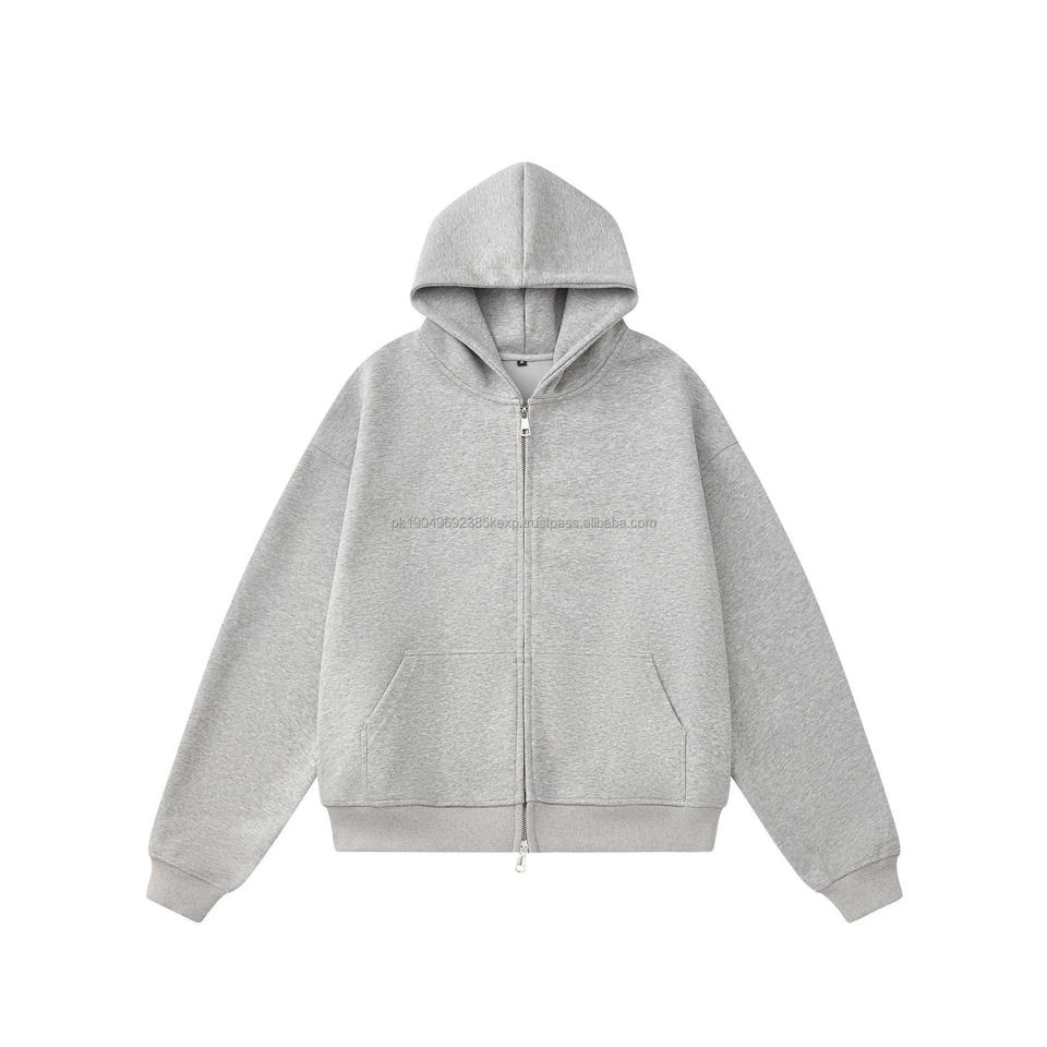 Sudaderas de Forro Polar Grueso de Algodón y Poliéster al por Mayor, Sudaderas con Capucha y Cremallera Bordadas para Hombre, Talla Grande