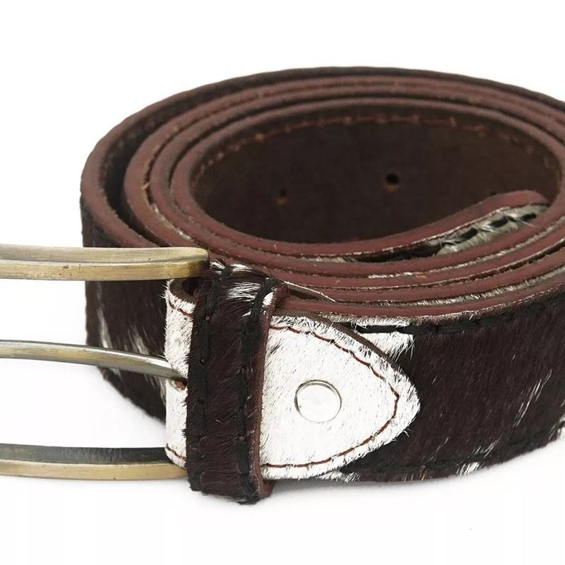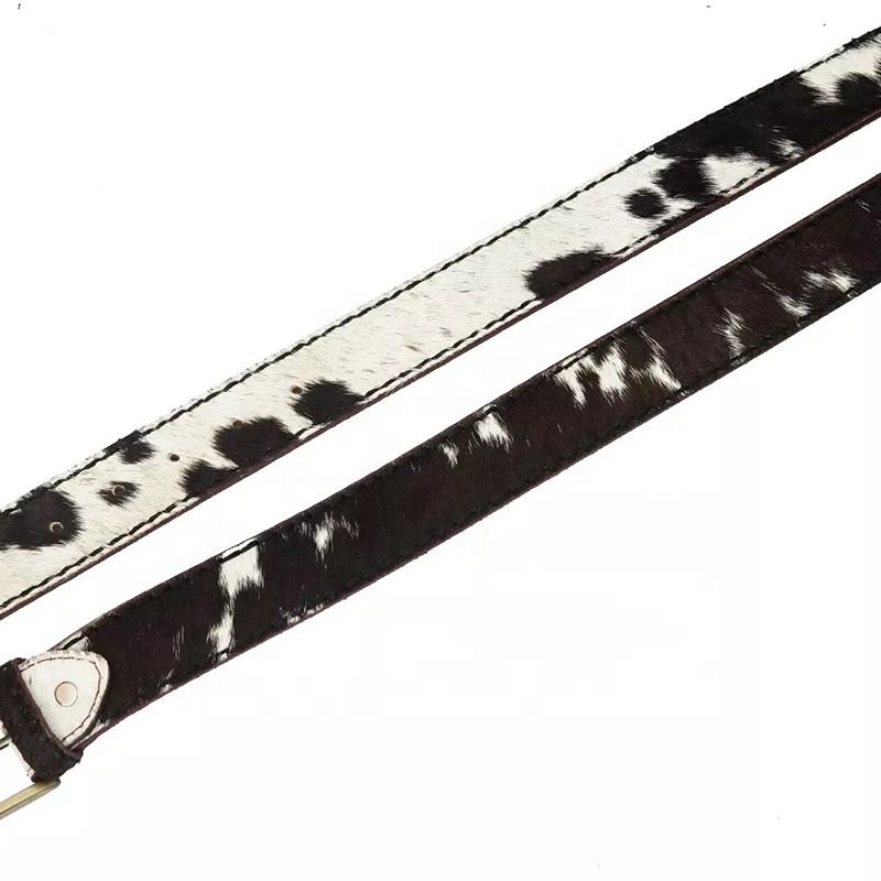 Cinturón con hebilla de cuero de pelo de vaca al por mayor, cinturón de doble cara para hombre, cinturones ajustables de piel de pelo de vaca para hombre
