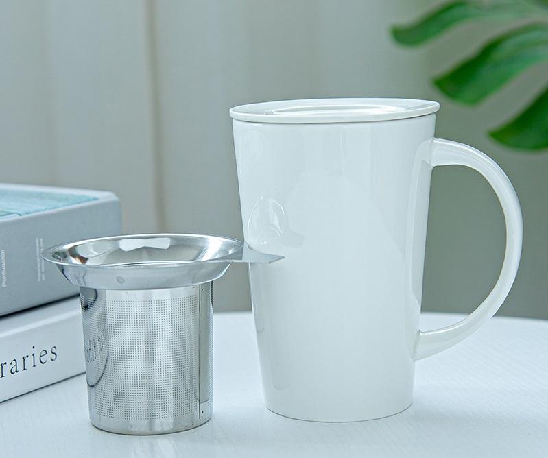 Juego de tazas de café de viaje de cerámica creativas al por mayor, colador de taza de té de porcelana con infusor y tapa