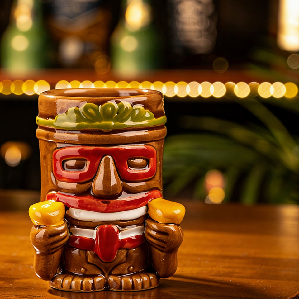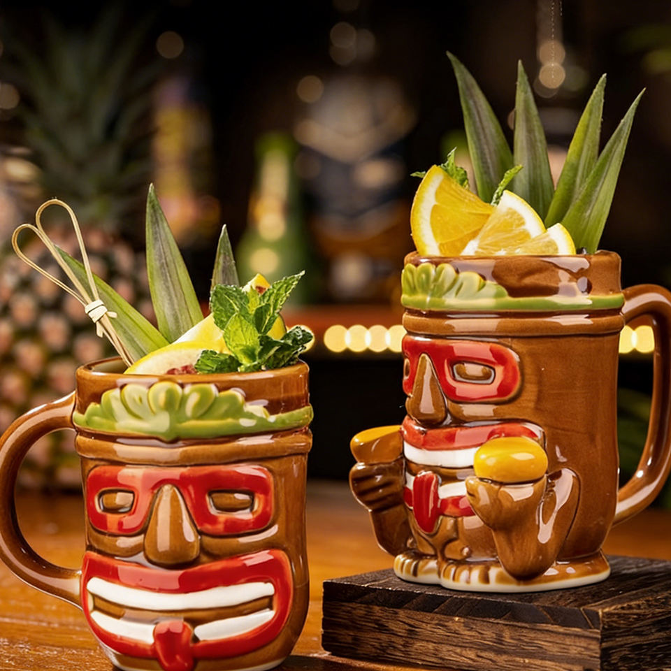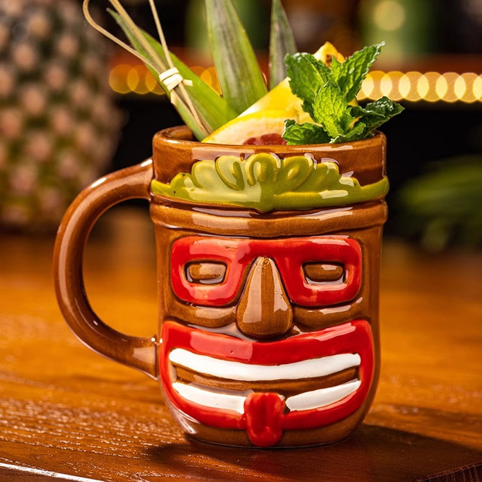 Taza de Cerámica con Diseño Tiki Personalizado Creativo al por Mayor, Taza Tiki Hawaiana con Diseño Tropical Novedoso, Reutilizable y de Grado Alimenticio