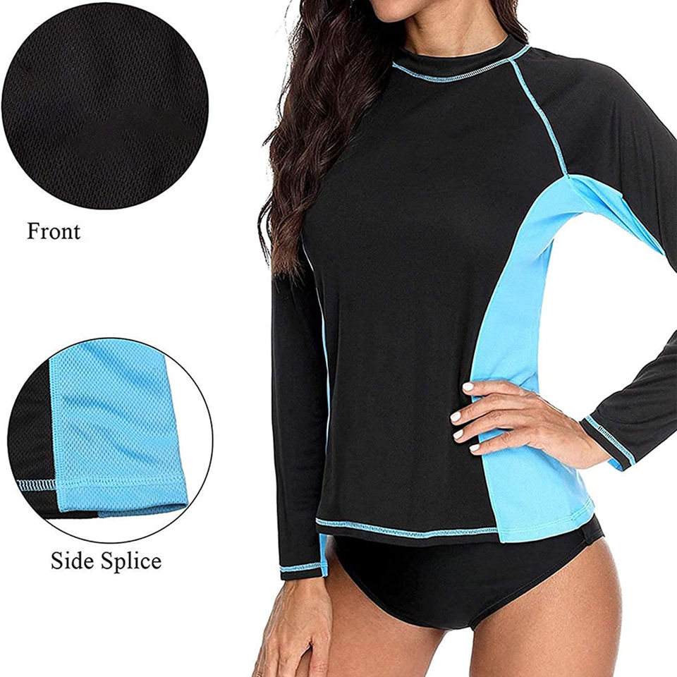 Venta al por mayor cuello redondo Slim-Fit Rash Guard camisetas protección de la piel para uso al aire libre de manga larga Rash Guard para mujeres OEM