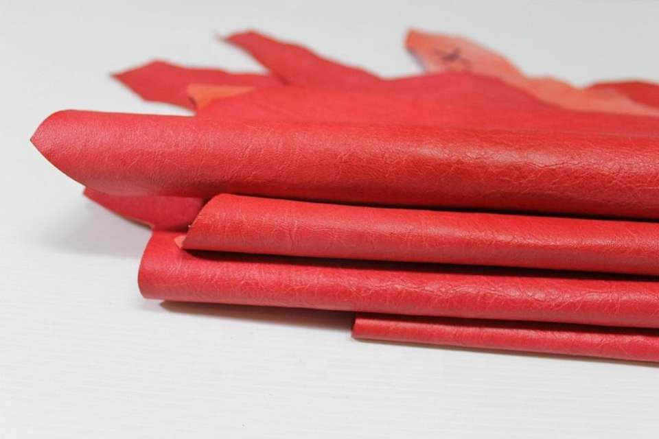 Pieles de Cordero de Primera Calidad, Color Rojo Frambuesa, Textura Arrugada, para Sofás, Manualidades y Moda, Venta al Por Mayor