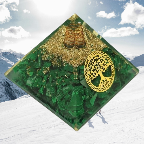 Pirámide de energía de orgón de malaquita hecha a mano de gran venta con bobina de cobre y símbolo de árbol de la vida protección EMF y curación de Chakras