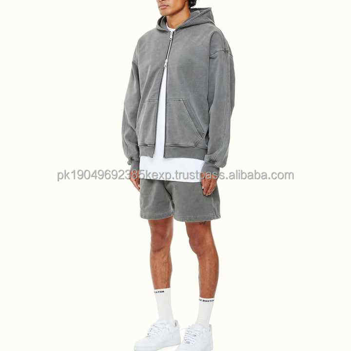 Sudadera con Capucha Personalizada al por Mayor, 100% Algodón Preencogido, con Cremallera Bidireccional, Doble Capucha, Lavada, para Hombre