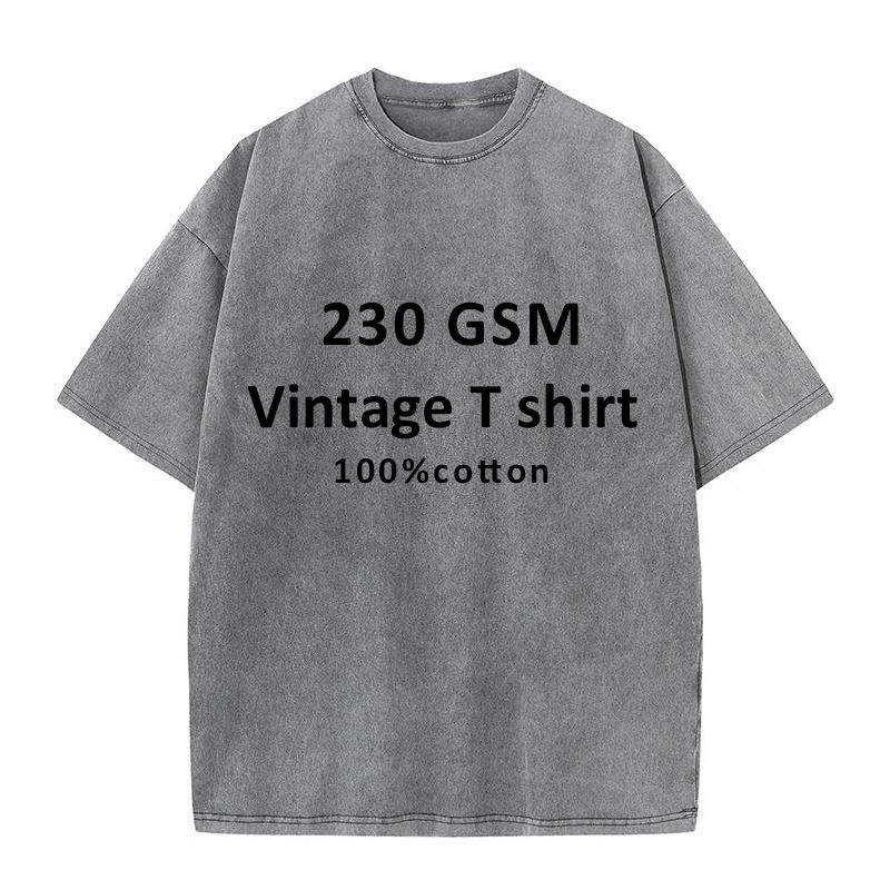 Venta al por mayor personalizado 230GSM Vintage hombres manga corta Camiseta 100% algodón de gran tamaño lavado camiseta peso pesado sólido patrón estilo