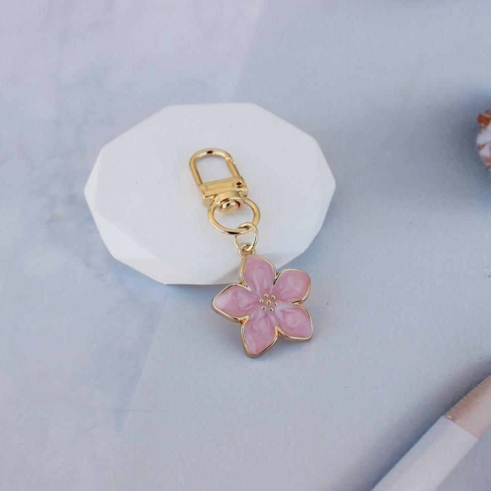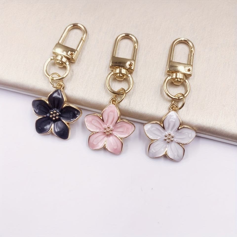 Llavero de metal 3D personalizado al por mayor con flor, llavero de diseñador con flor pequeña esmaltada, colgante de moda para bolso