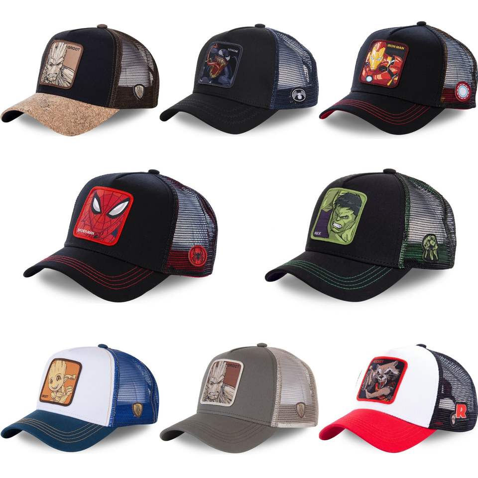 Gorra de béisbol de malla de 5 paneles personalizada al por mayor estilo vintage transpirable con parche de superhéroe para conductores de camiones ropa deportiva informal