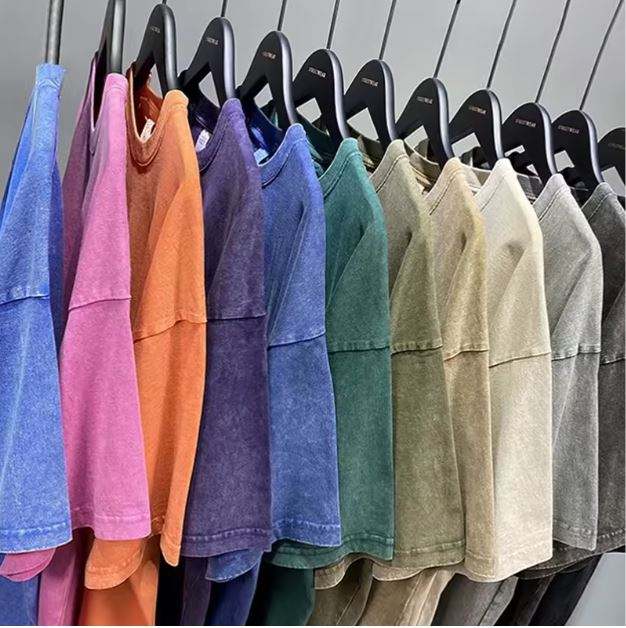 Venta al por mayor de lavado ácido personalizado camiseta mujeres hombres Unisex de gran tamaño Sun Faded camiseta serigrafía lavado ácido camiseta