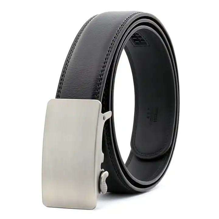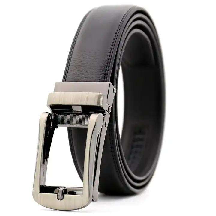 Cinturón de cuero genuino deslizante de trinquete automático personalizado al por mayor para hombres Material de piel de vaca de etiqueta privada con aleación para