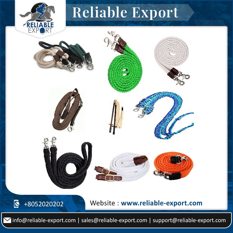Riendas de caballo tejidas de poliéster básicas personalizadas al por mayor, equipo de equitación ecuestre duradero, entrenamiento de carreras occidental con logotipo personalizado