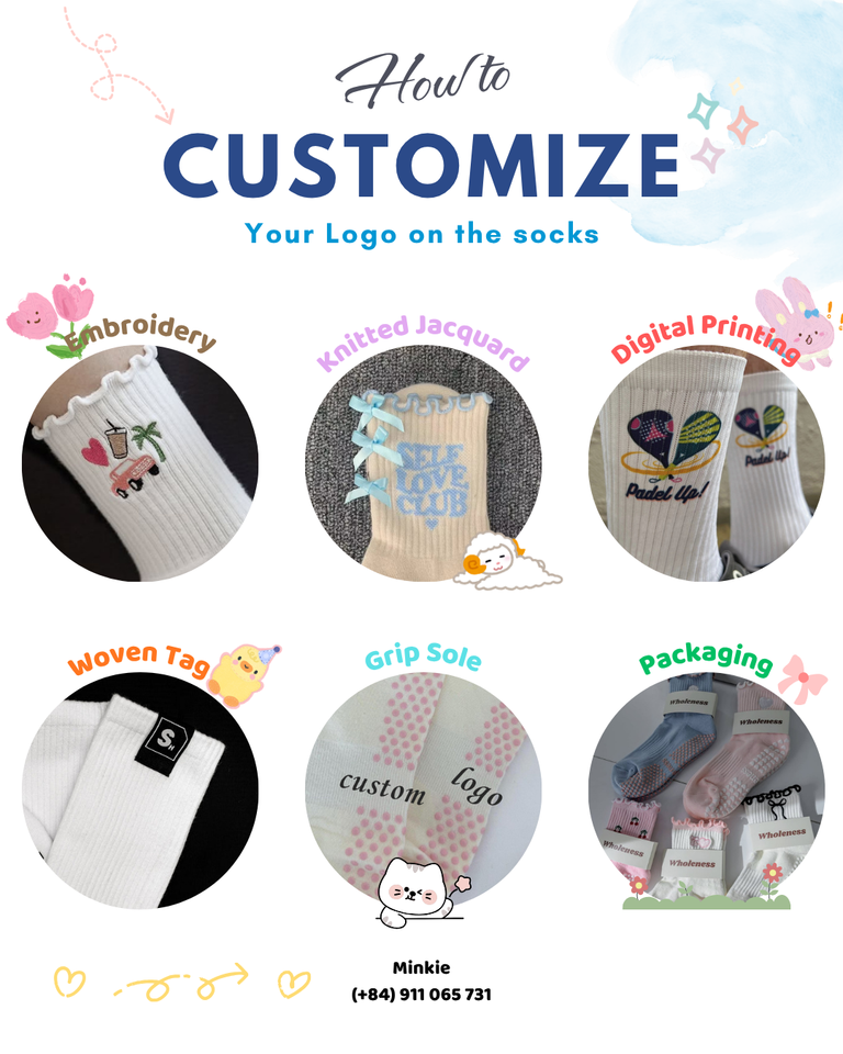 Calcetines Deportivos de Algodón con Jacquard, Logotipo Personalizado, Lazo, Volantes, para Yoga y Pilates, Tejidos con Spandex, Venta al Por Mayor