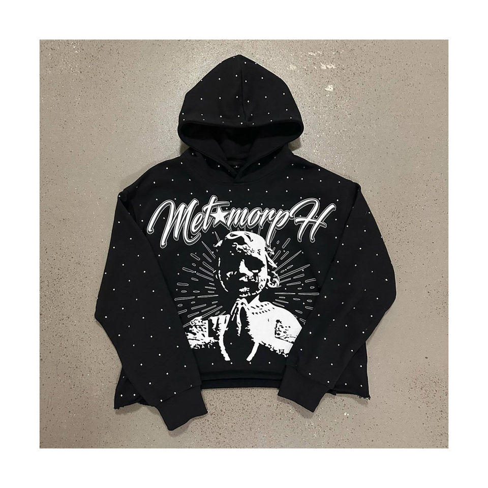 Venta al por mayor personalizado Bling Rhinestone Sudadera con capucha diseño esqueleto cráneo personalizado ácido lavado Rhinestone sudaderas con capucha hecho en Pakistán 2025