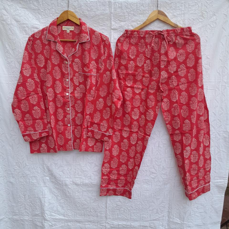 Product Name:Luxurious Hand Block Printed Cotton Long Pajama Set