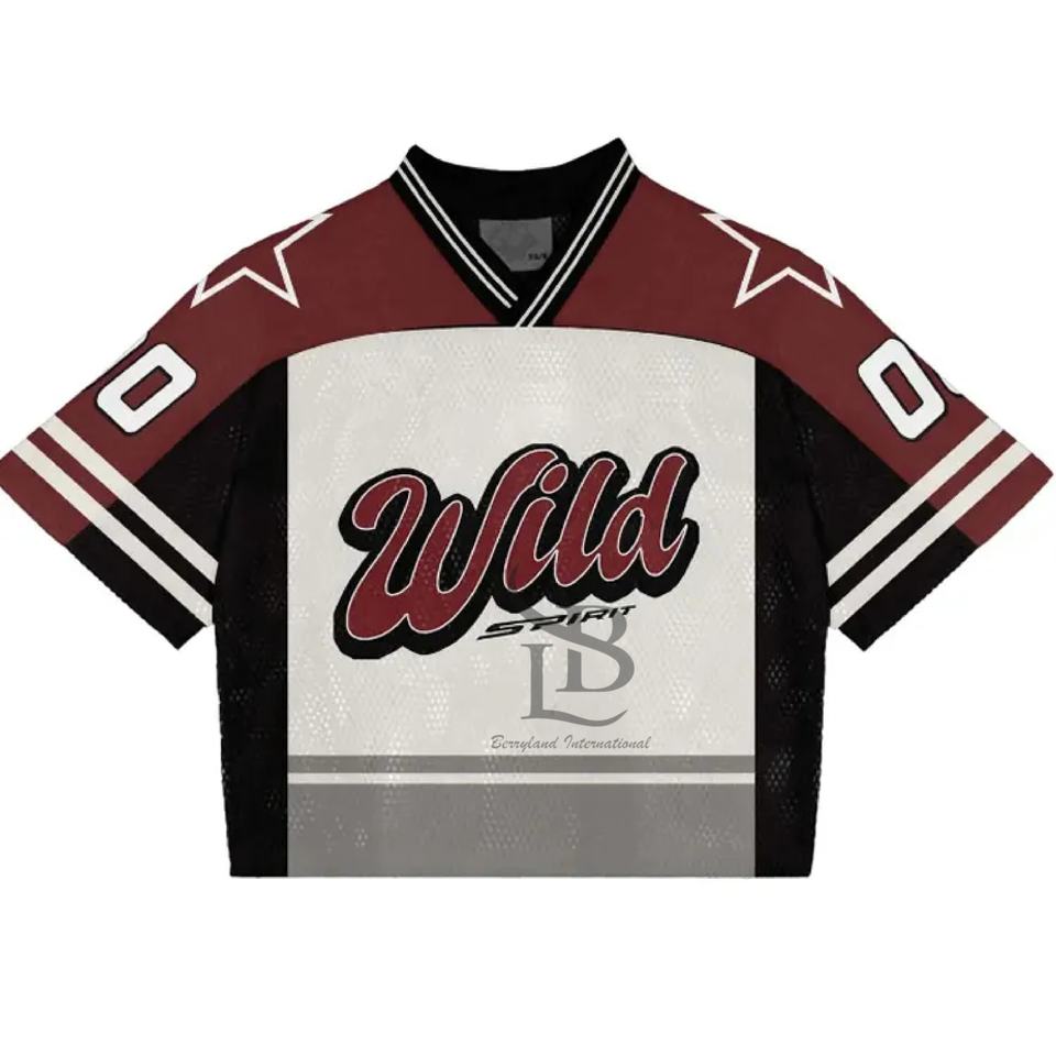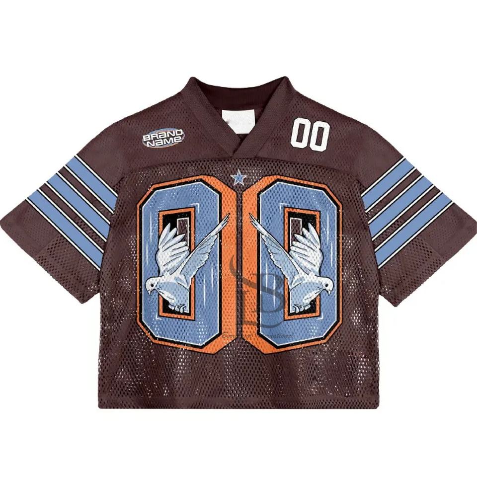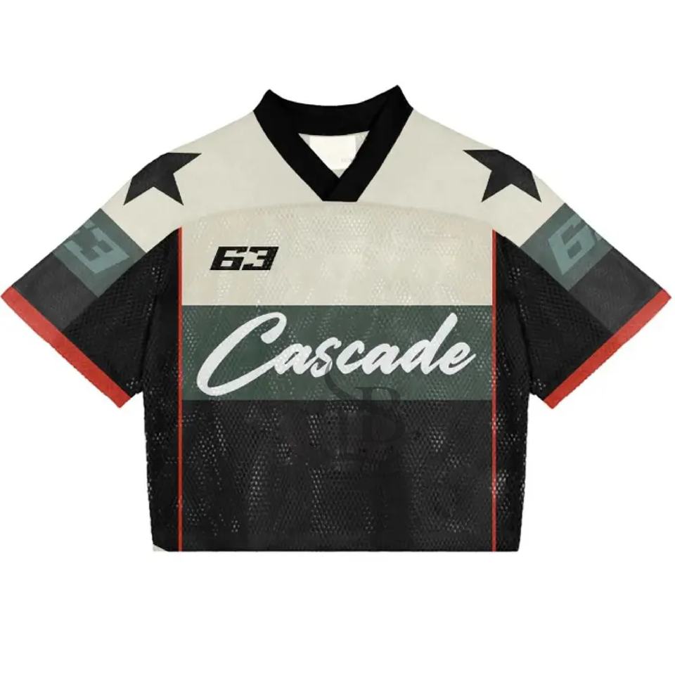 Venta al por mayor personalizada Boxy Mesh O Neck Jersey Streetwear Oversized Mesh American Football Jersey T-shirt Men Mesh Football Shirt