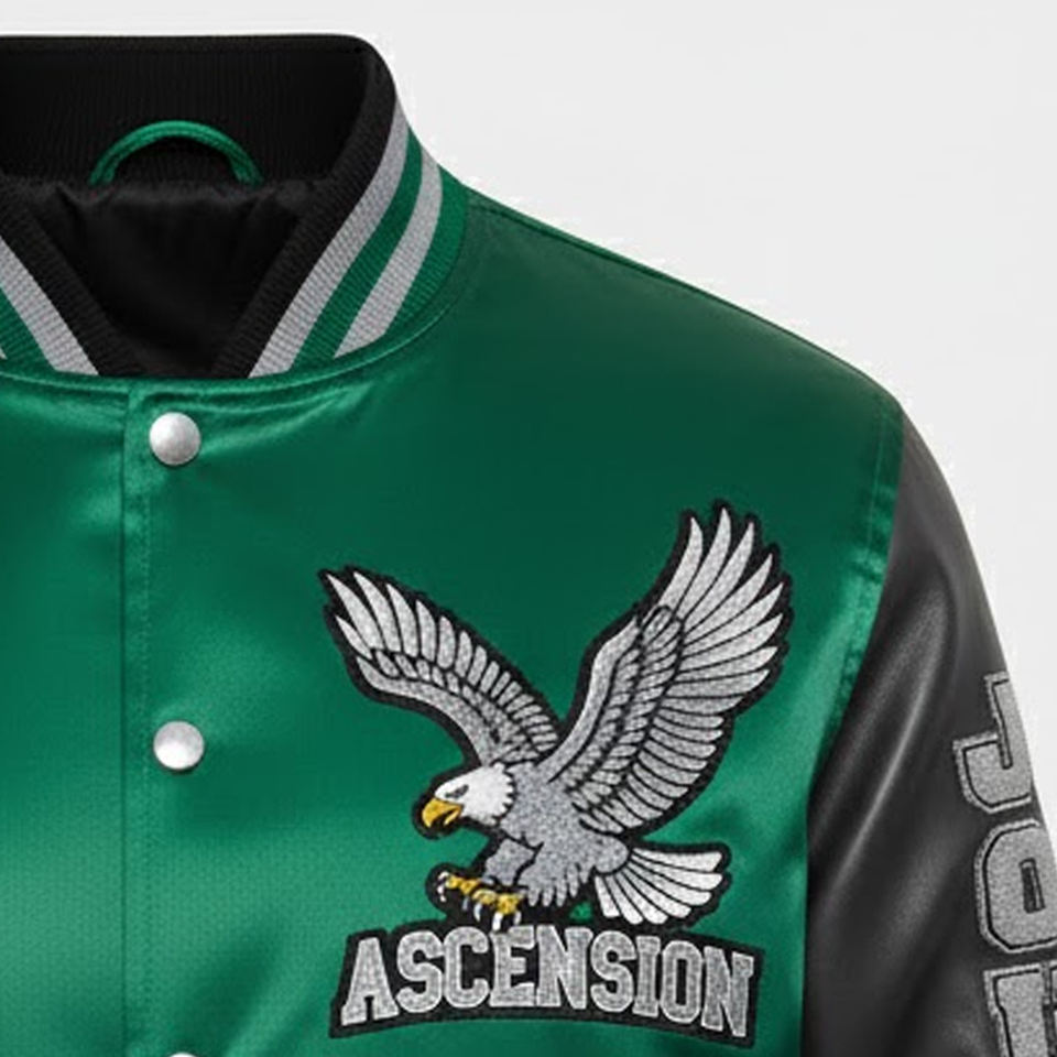 Chaqueta Universitaria de Satén con Bordado de Chenille para Hombre