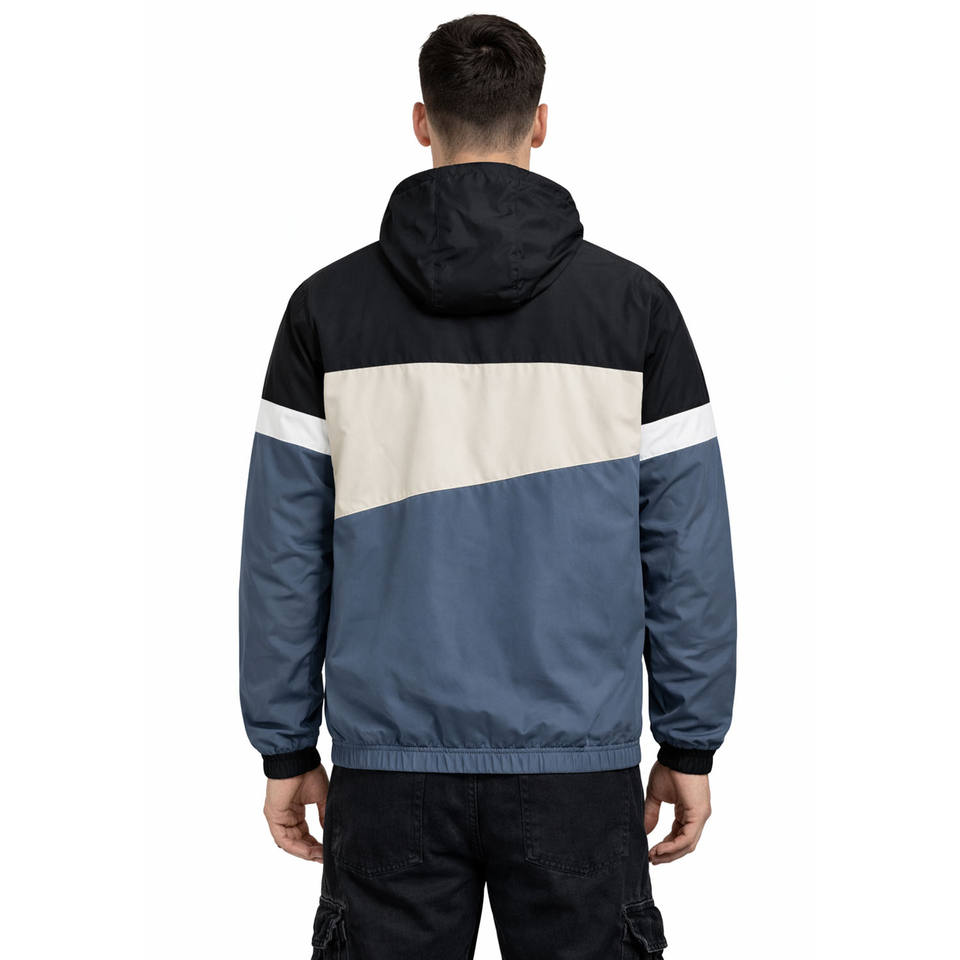 Chaqueta cortavientos de nailon a la moda con bloques de color personalizados al por mayor para hombre, ligera, resistente al viento, para exteriores, bajo MOQ