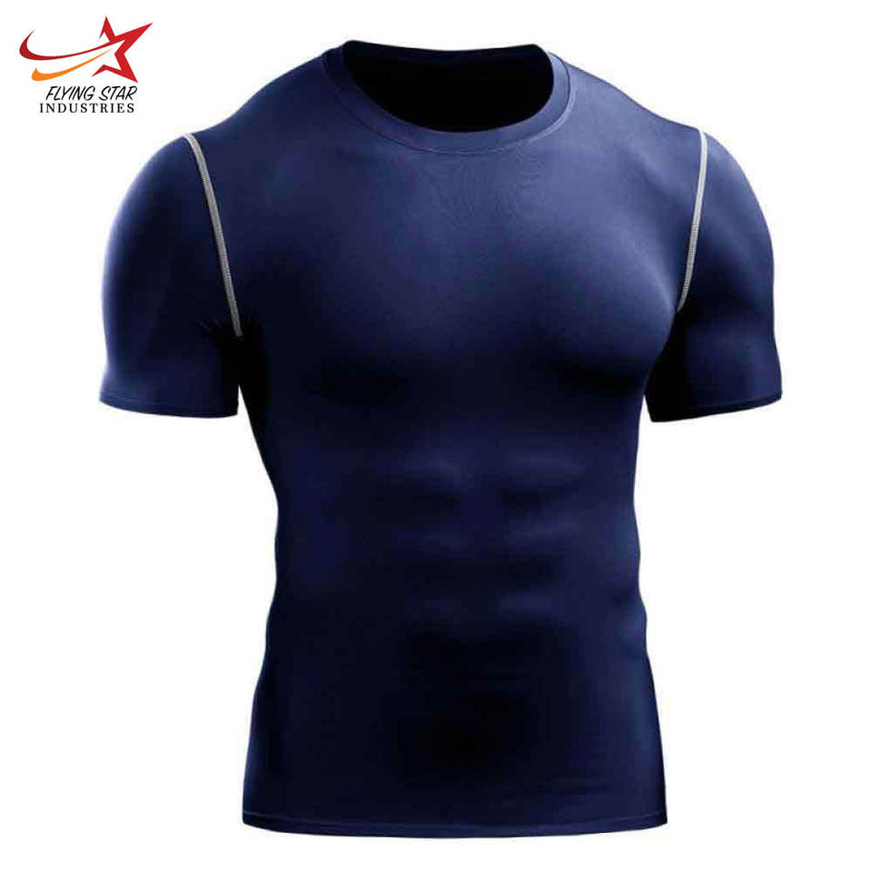 Camisetas de compresión de hombre de color personalizadas al por mayor camisetas de gimnasio de diseño sencillo hechas de poliéster Spandex