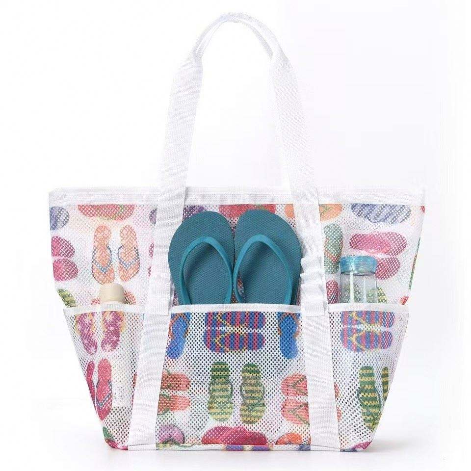 Bolsa de compras reutilizable impermeable con diseño bonito personalizado al por mayor, bolsa de viaje de malla de nailon, bolsa de playa para natación para mujer, fin de semana