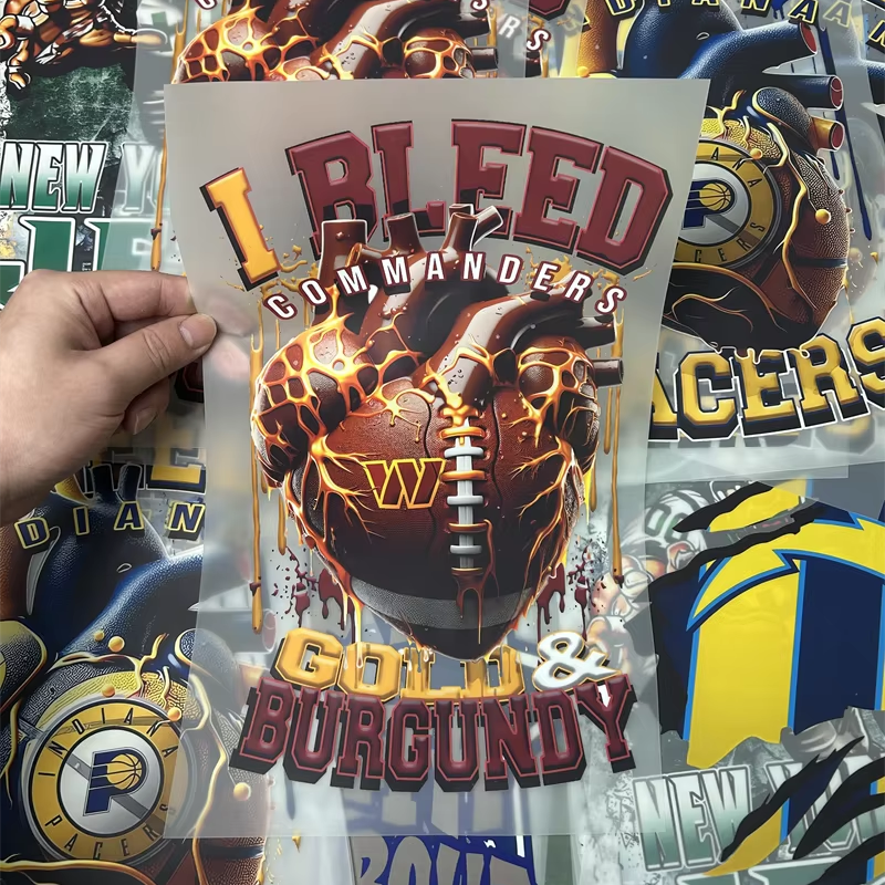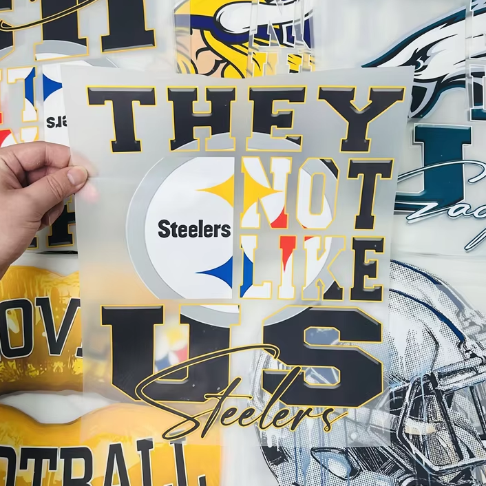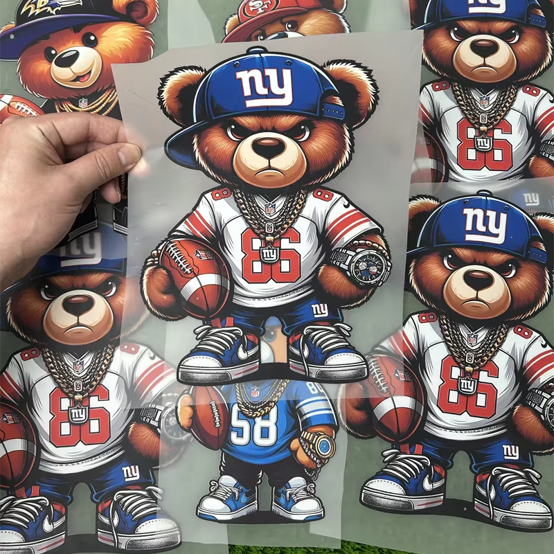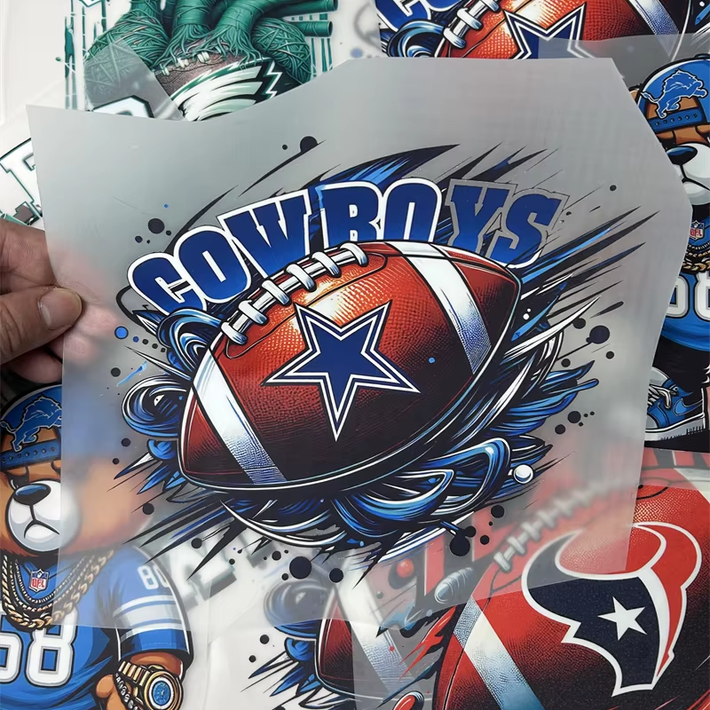 Adhesivo de transferencia DTF personalizado al por mayor, etiqueta de transferencia de calor de plastisol, transferencia de vinilo para planchar, transferencia de impresión para ropa NFL