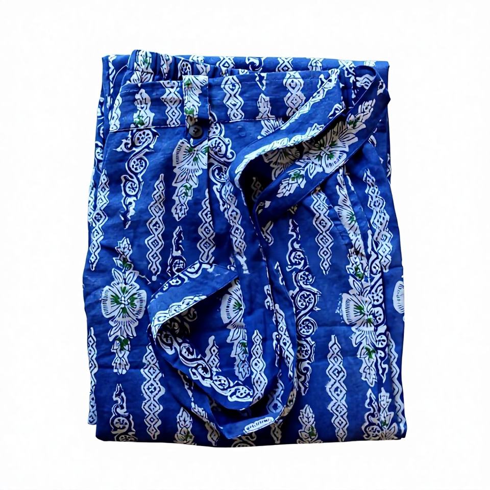 Pantalones de tela con estampado de bloques de diseño personalizado al por mayor, cintura elástica con lazo, bolsillos, corte relajado, pantalones cómodos para mujer