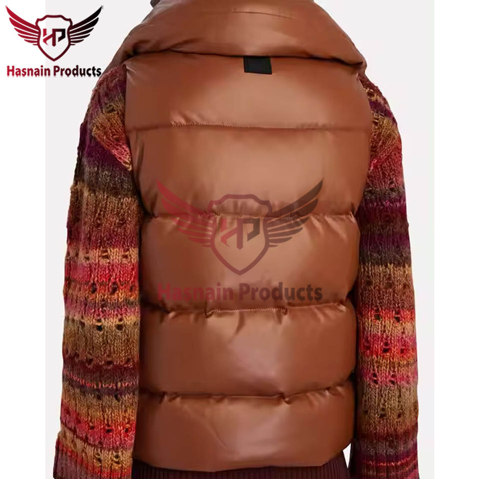 Venta al por mayor de diseño personalizado de moda Puffer estilo de invierno de las mujeres Chaleco de cuero genuino Opciones de pedido a granel disponibles