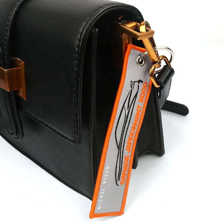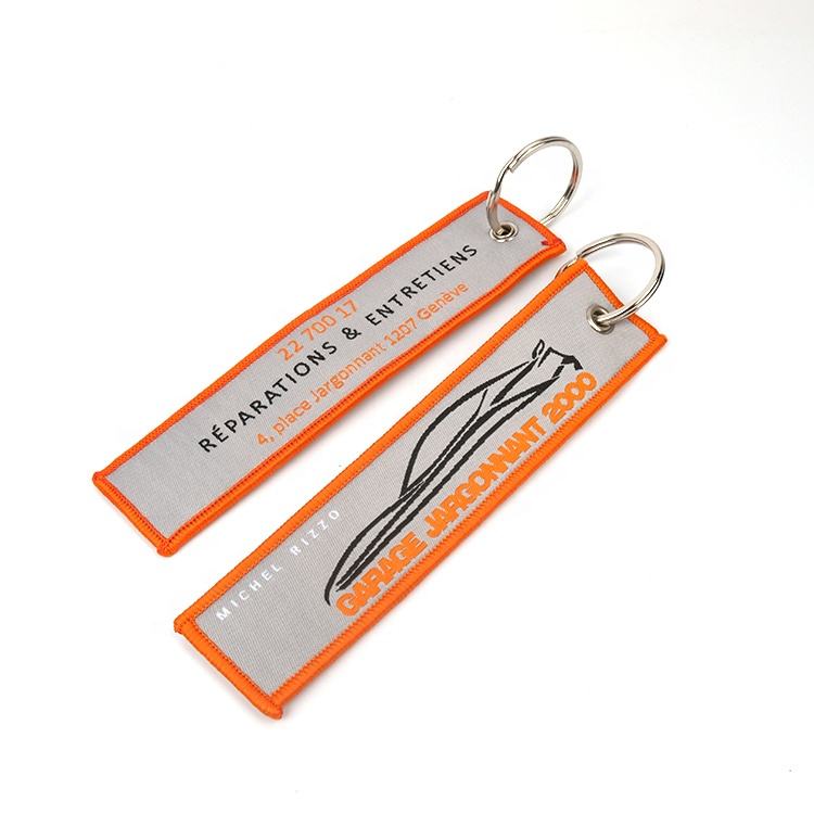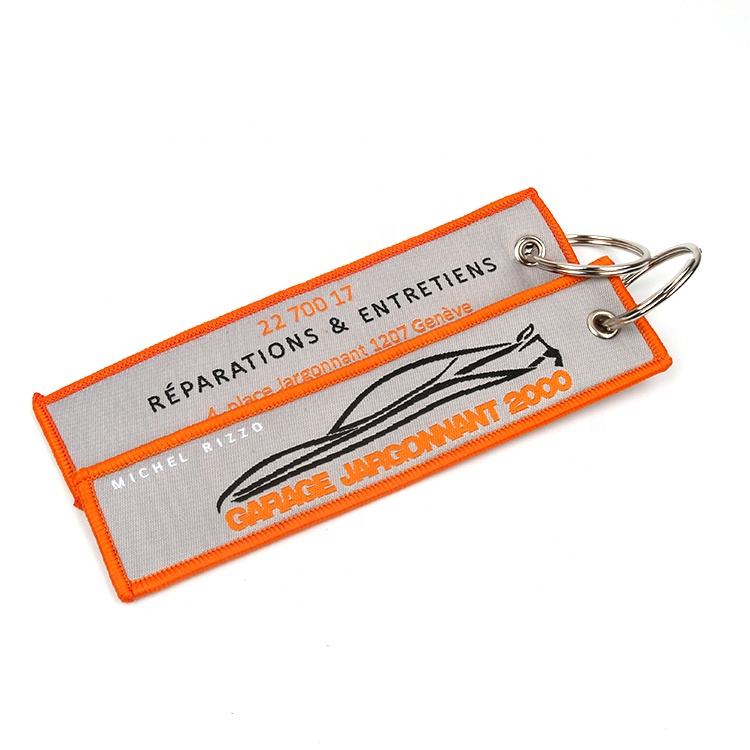 Nombre del producto:Elegante naranja Merrow frontera nombre logotipo tela llano tejido coche llavero