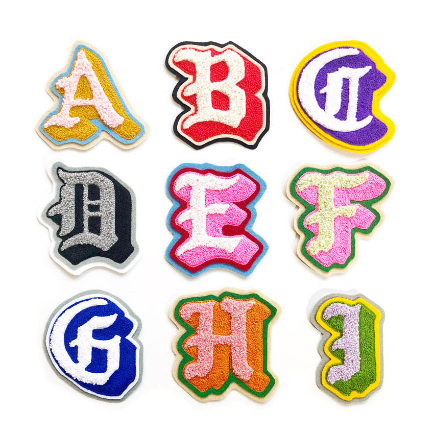 Nombre del elemento:Alfabeto de parche de letra de chenille bordado personalizado al por mayor