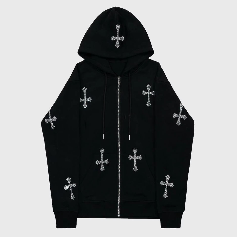 Sudadera con Capucha Personalizada al por Mayor, Bordada, con Cierre Completo, Logotipo de Pedrería, Alta Calidad, 100% Algodón, Colores y Diseños Personalizados