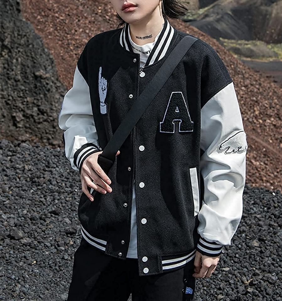 Chaqueta Letterman bordada personalizada al por mayor | Chaqueta universitaria con mangas de cuero PU de cuerpo de lana para hombres y mujeres OEM