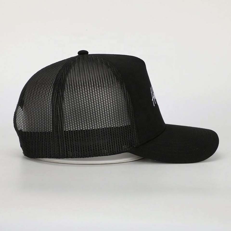 Gorra Deportiva Unisex de 5 Paneles con Logotipo Bordado Personalizado al por Mayor, Gorra de Algodón Negro de Alta Calidad con Malla, Estilo Hip Hop, para Playa