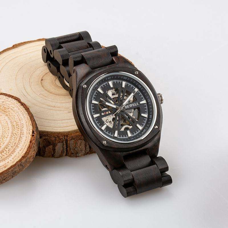 Reloj de Cuarzo de Madera Personalizado al por Mayor, Resistente al Agua 3ATM, Reloj Mecánico con Movimiento Visible para Hombre