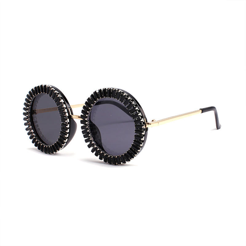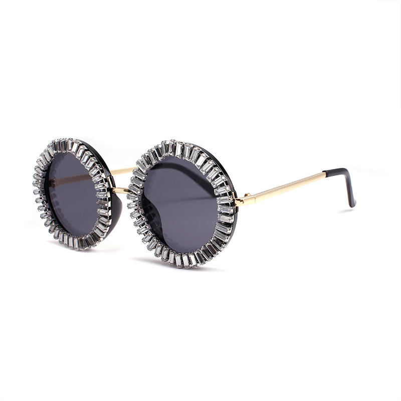 Venta al por mayor de gafas de sol con montura personalizada y diamantes de imitación para hombres y mujeres, montura dorada con lentes UV400, accesorio glamuroso para vestido de fiesta y club nocturno