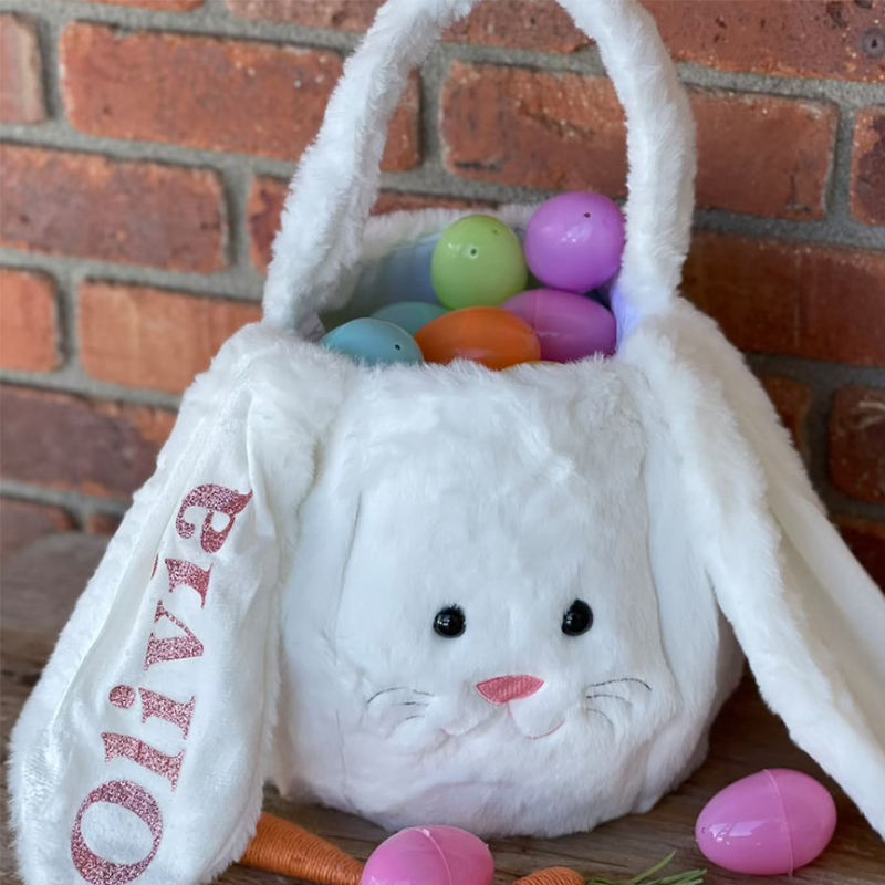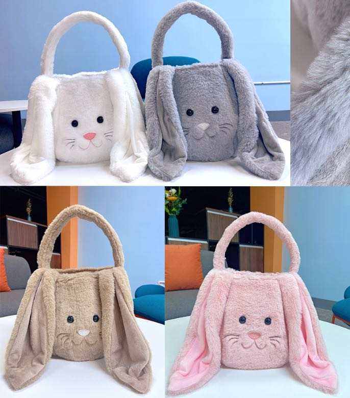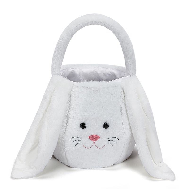 Venta al por mayor personalizado orejas largas peludas conejito de Pascua cubos felpa conejito peludo bolsas de regalo cestas de Pascua