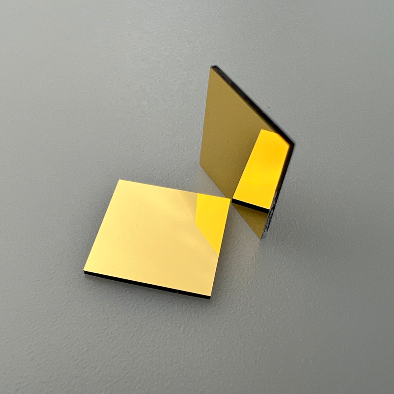 Reflector de película dorada chapado en oro personalizado al por mayor 10*10*1 vidrio óptico para máquina de grabado láser