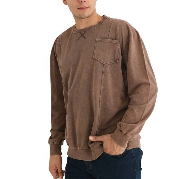 Venta al por mayor personalizado peso pesado ácido lavado 100% algodón sudadera de gran tamaño Vintage estampado otoño cuello redondo en blanco sólido liso teñido