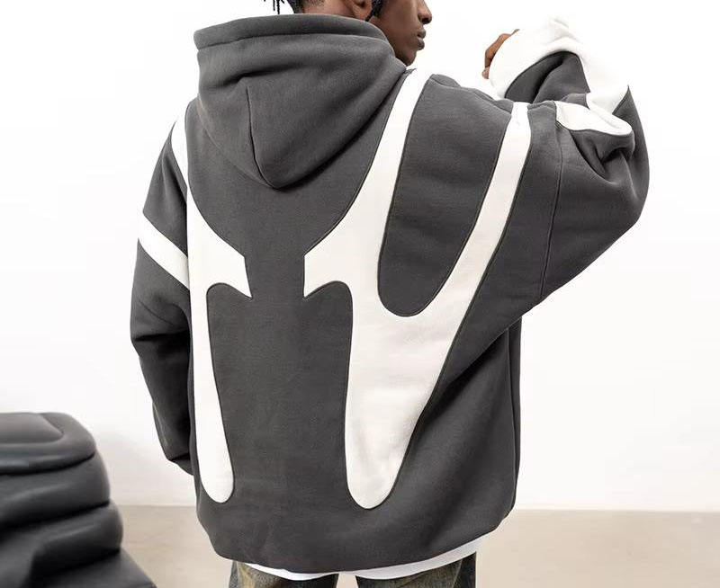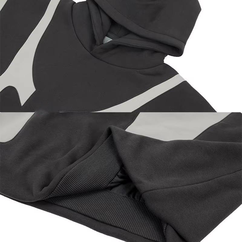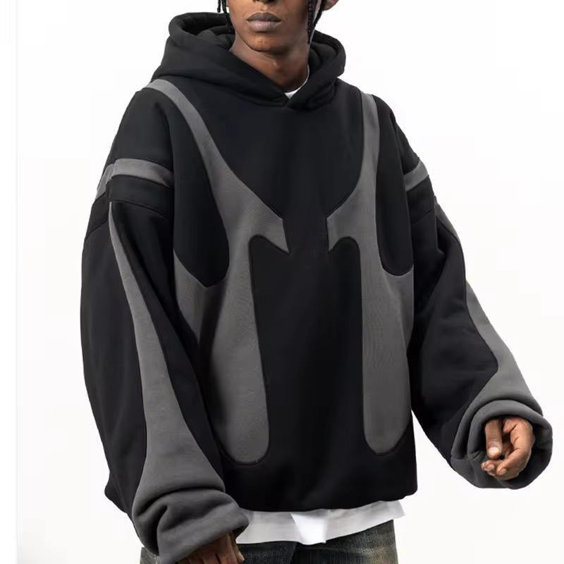 Sudaderas con capucha personalizadas para hombre con logotipo bordado de doble capa y talla grande empalmadas con contraste de color de calle al por mayor