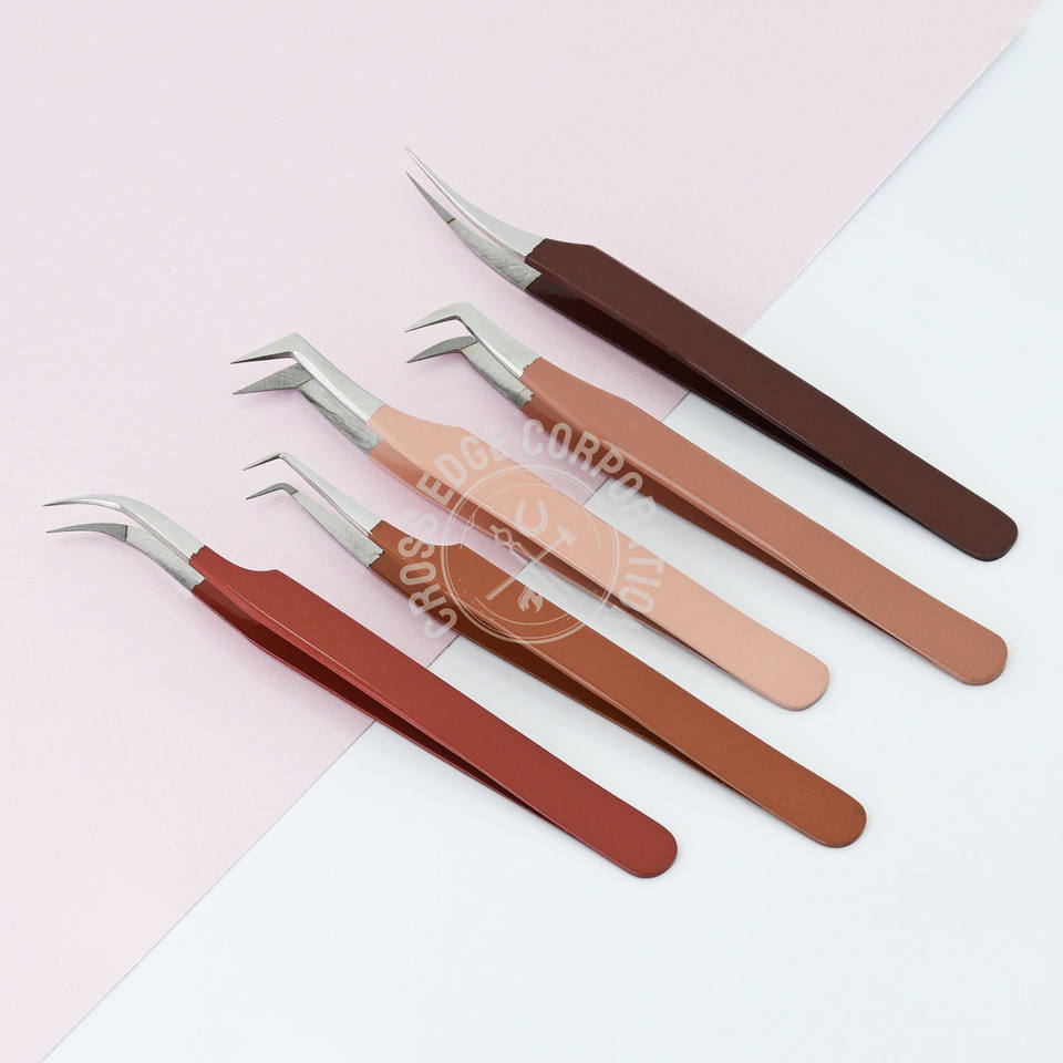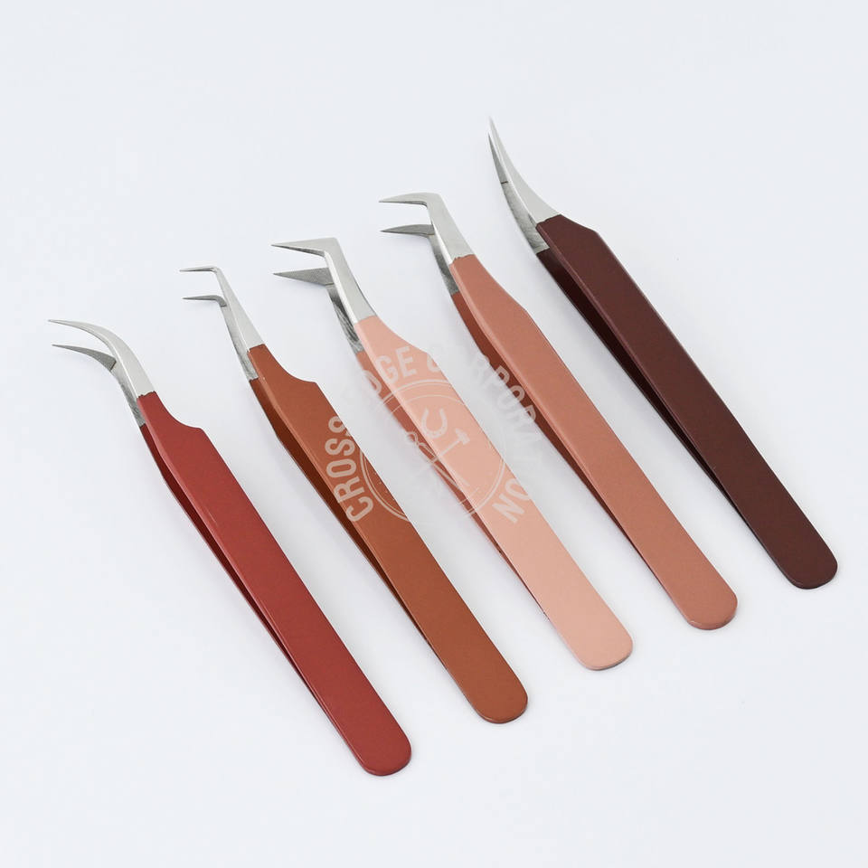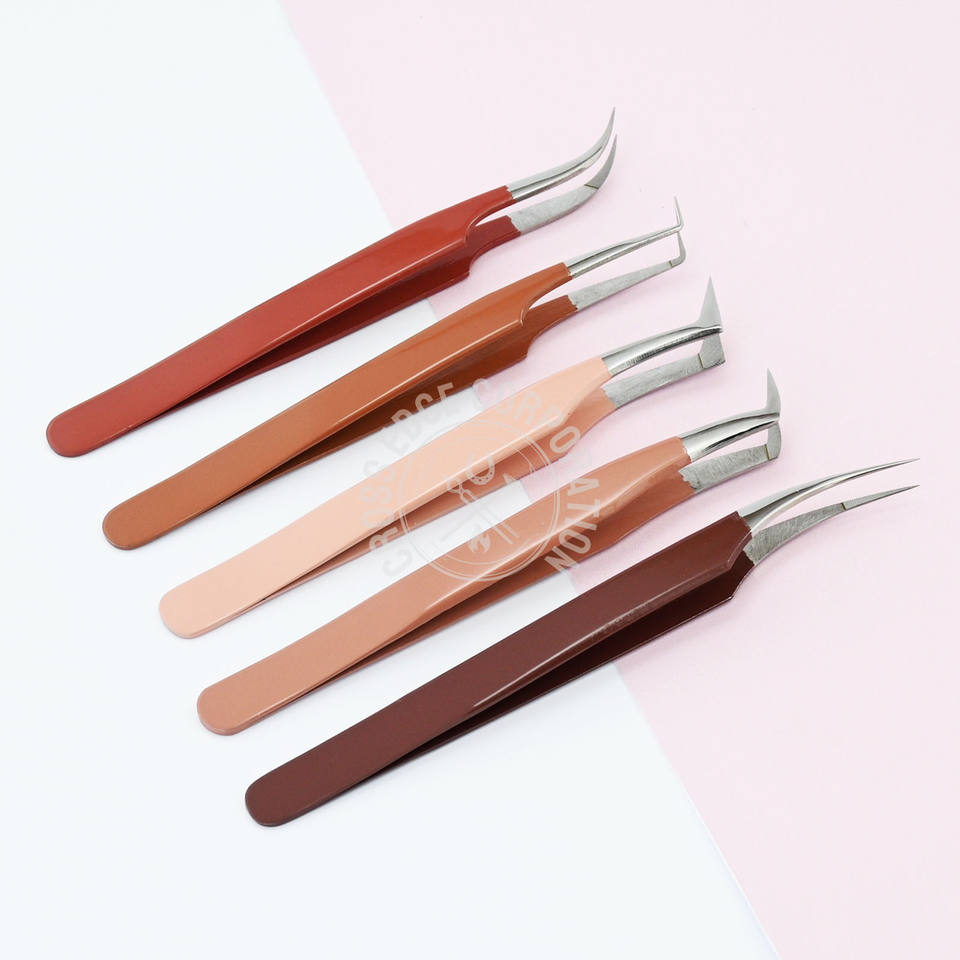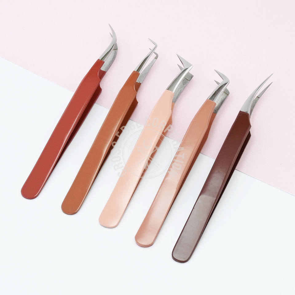 Venta al por mayor etiqueta personalizada 90 pinzas de volumen de bota pinzas de pestañas clásicas curvas Luna aislamiento curvo puntas de acero inoxidable