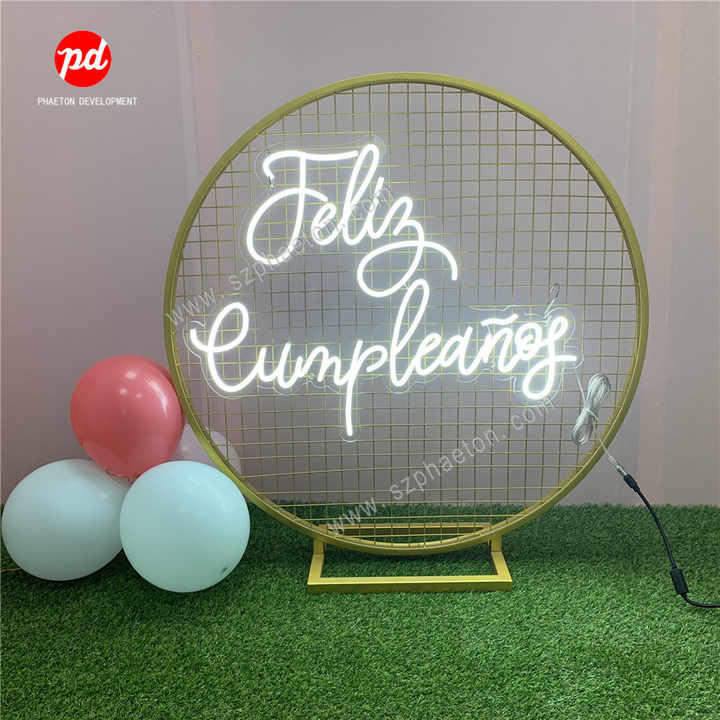 Letreros de neón Led Feliz Cumpleanos personalizados al por mayor, luces de neón Mis Quince XV para decoraciones para fiesta de feliz cumpleaños