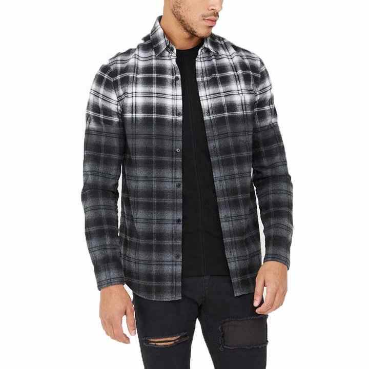 Camisa de franela de manga larga ligera personalizada al por mayor para hombre, ropa de calle antiarrugas, ropa de lujo a la moda, OEM teñido con hilo