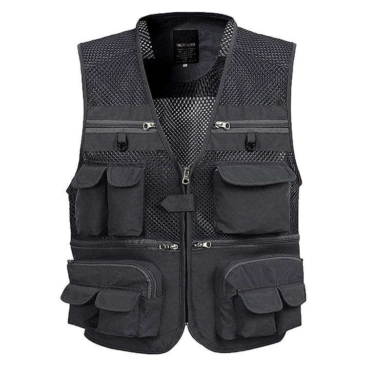Chaleco Utilitario Ligero de Lona Personalizado al por Mayor, Multibolsillos, Secado Rápido, 100% Poliéster, para Invierno, Pesca, Caza, Camping