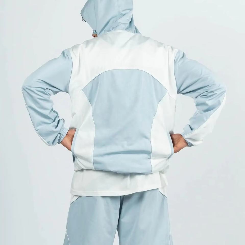 Chándal de nailon reflectante ligero para hombre, conjunto de chaqueta y pantalones cortos con cremallera personalizado al por mayor, tecnología de impresión sostenible para primavera