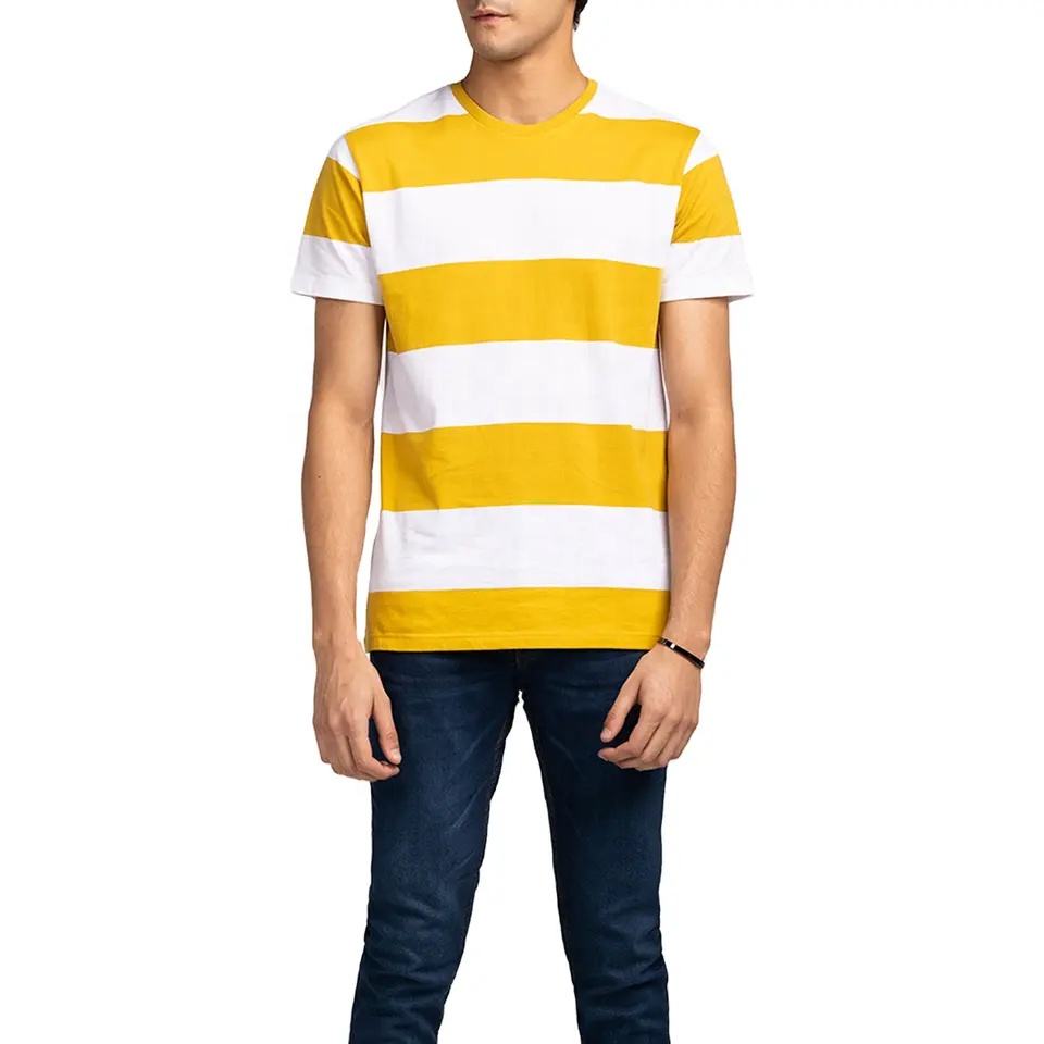 Venta al por mayor logotipo personalizado 100% algodón Jersey manga corta Impresión digital diseño de rayas color ropa de hombre casual camiseta en blanco
