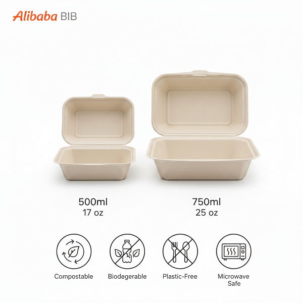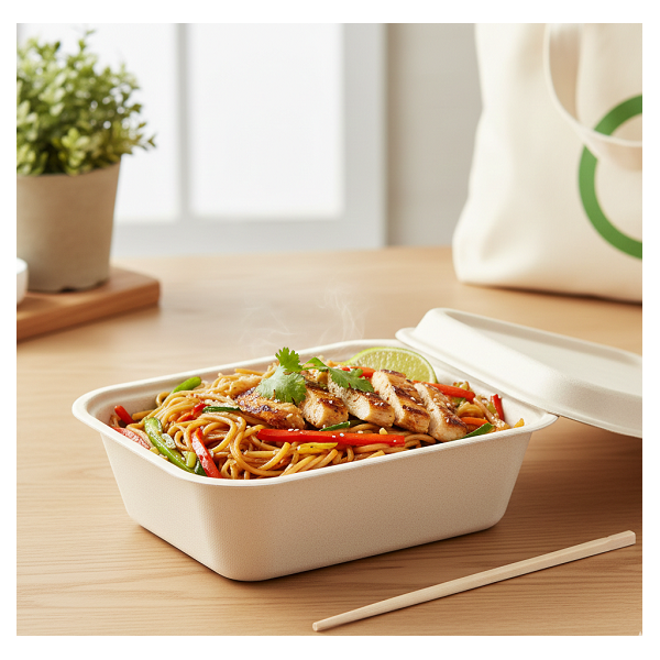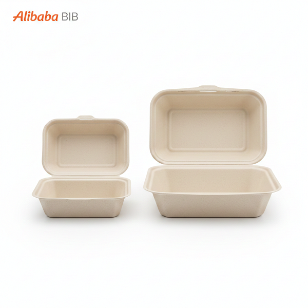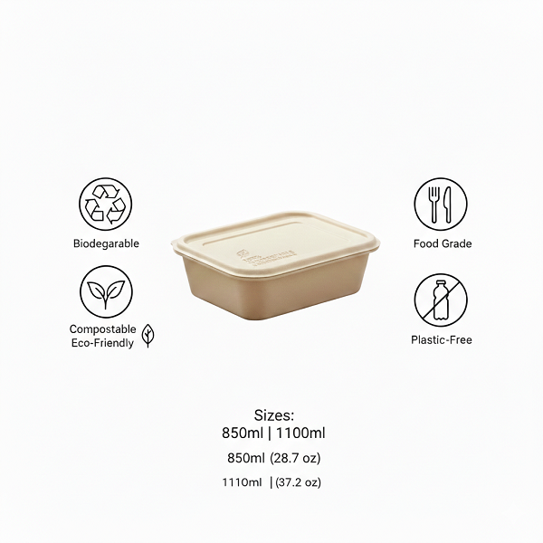 Contenedor Rectangular de Bagazo con Logotipo Personalizado al por Mayor, Lonchera Sostenible de Fibra de Caña de Azúcar para Suministro a Granel
