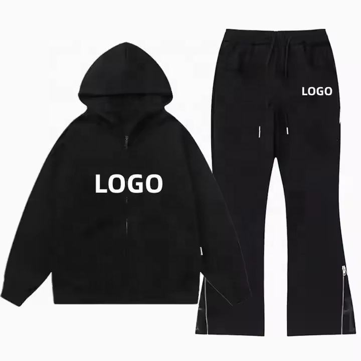 Venta al por mayor de chándal en blanco con logotipo personalizado, chándal vintage de gran tamaño lavado con ácido de dos piezas, conjunto de chándal para hombre
