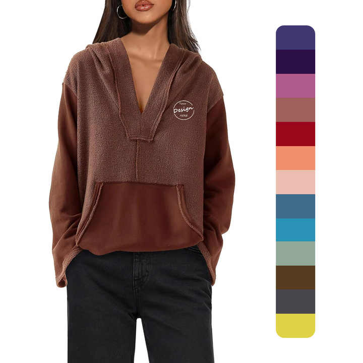 Venta al por mayor de logotipo personalizado de la marca de gran tamaño Patchwork pulóver sin cordón Sexy nueva moda mujeres otoño Yoga sudaderas con capucha