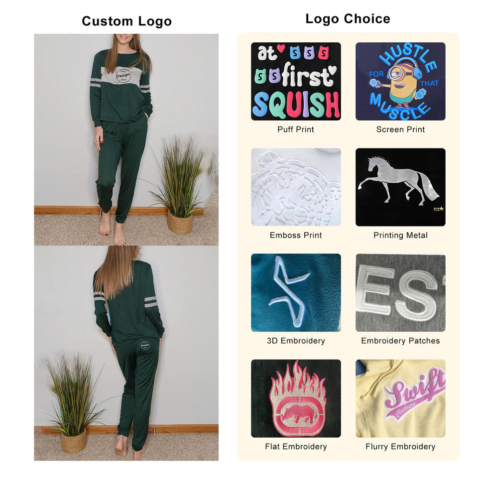 Conjuntos Deportivos Casuales de 2 Piezas con Bloques de Color y Logotipo Personalizado al por Mayor, Top de Manga Larga para Mujer, Pantalones Jogger con Cordón, Conjuntos Deportivos para Damas