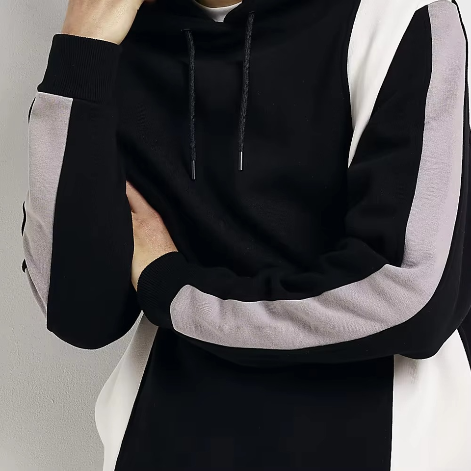 Sudadera con capucha con cordón de bloque de color y logotipo personalizado al por mayor para hombre, sudaderas con capucha transpirables, ropa informal de mezcla de algodón básica cómoda