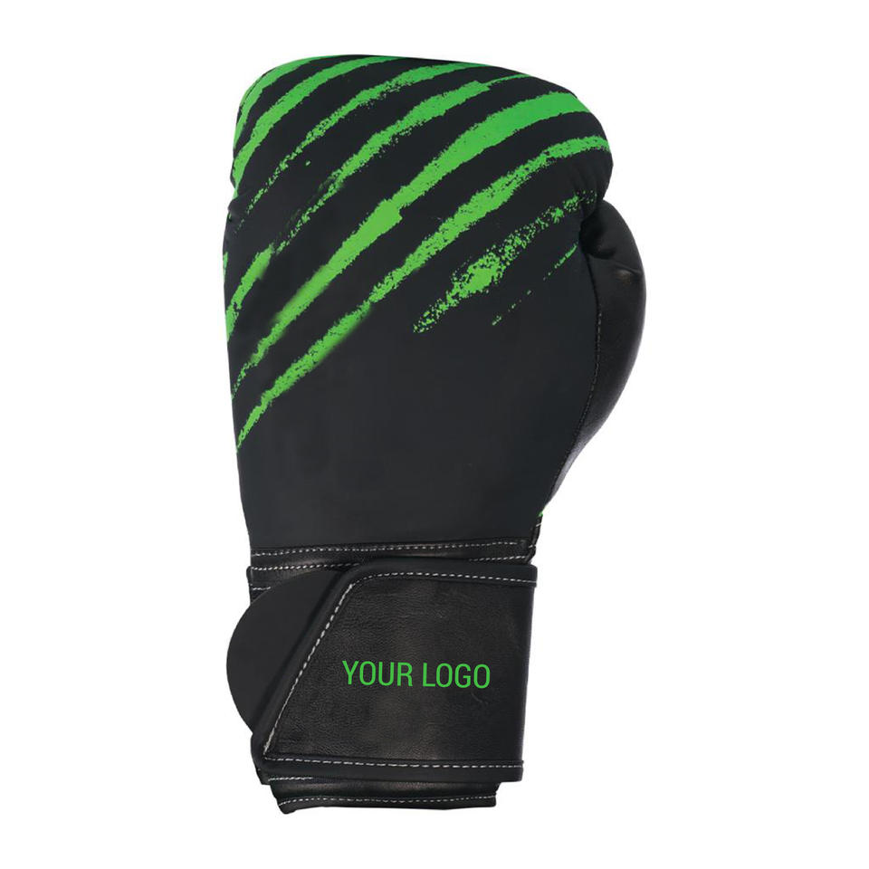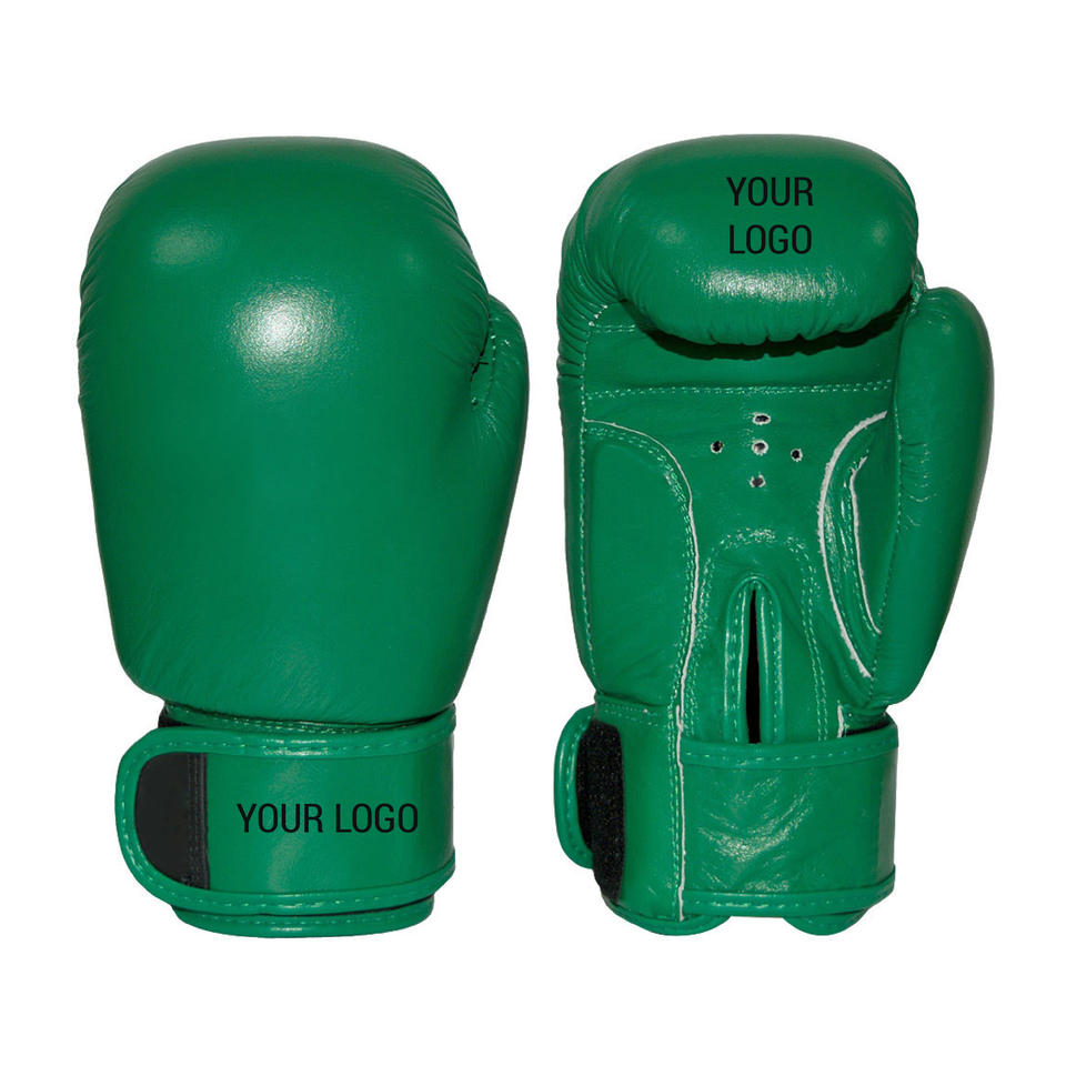Venta al por mayor de guantes de boxeo de piel de vaca con logotipo personalizado, tallas profesionales, modelo verde, patrón impreso, fabricante de cuero, equipo de entrenamiento