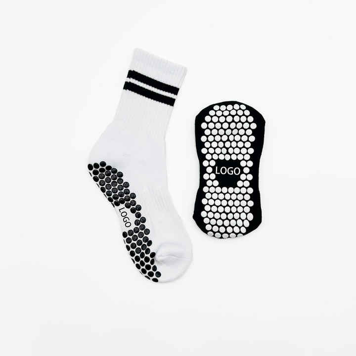 Calcetines de yoga antideslizantes ecológicos de algodón para mujer, de cuello alto, con diseño de logotipo en la parte inferior, para deporte, venta al por mayor